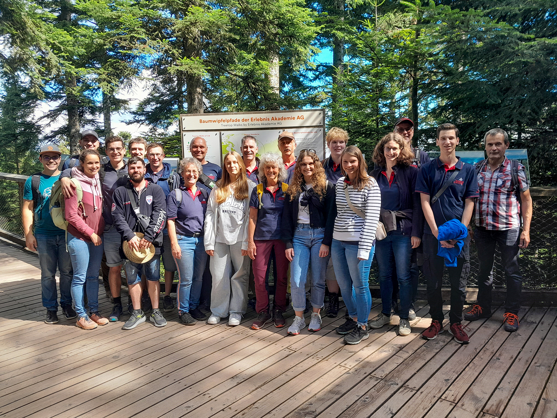 Eine Gruppe der Feuerwehr Schiltach machte sich auf Ausflugsfahrt. Nach kurzer Rast mit Brezeln in Lossburg, führte der Bus die Reisegesellschaft nach Bad Wildbad. Mit der Standseilbahn ging es zügig auf den Sommerberg. Oben angekommen war der Baumwipfelpfad erstes Ziel. In luftiger Höhe wurde der Nordschwarzwald erkundet. Manch einer wagte die Rutsche den hohen Turm herunter. Auf einem kurzen Fusspfad gelangten sie zur Wildline, einer Hängebrücke. Gestärkt in einer der Wirtschaften auf dem Berg, machte sich die Gruppe an den Abstieg zum Bus, der sie nach Karlsruhe brachte.