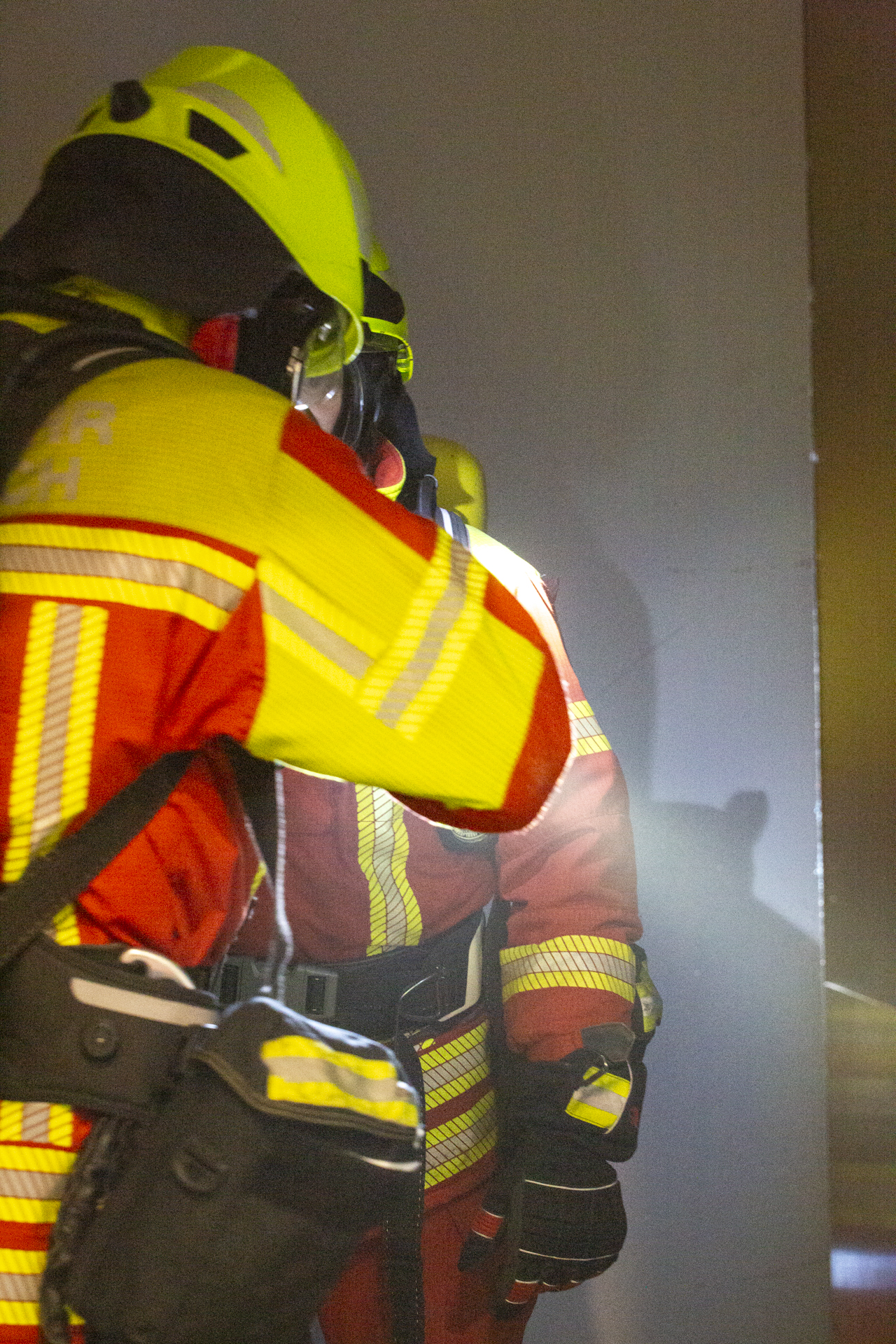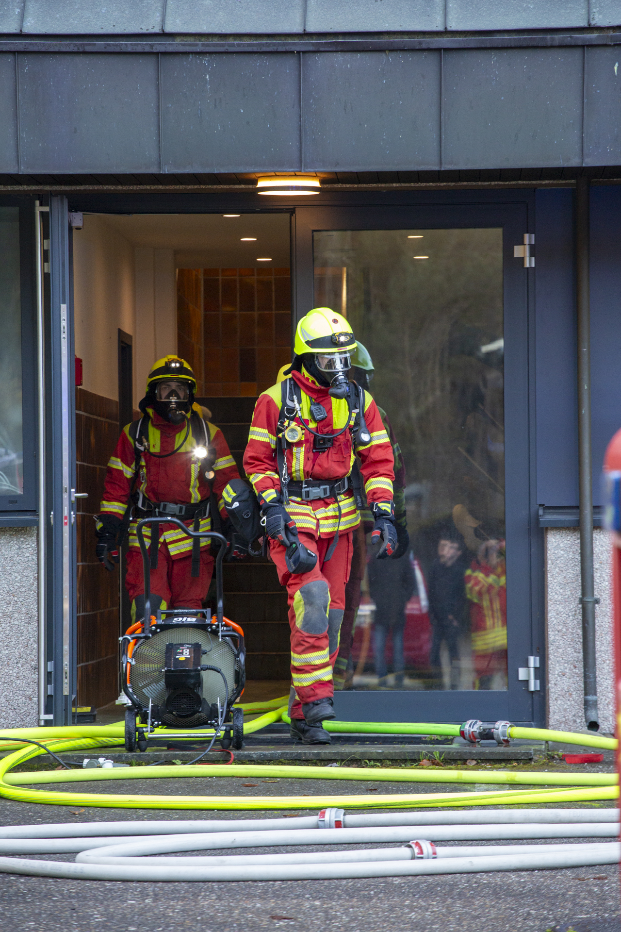 Durch den vorhandenen Wäscheschacht verbreitet sich der Rauch rasch ins Obergeschoss. Drei Personen (Jugendwehr) schaffen es, ins rauchfreie Büro zu flüchten. Vier weitere Personen erleiden dagegen beim Versuch, ins Freie zu gelangen, teils schwere Verletzungen und Rauchgasvergiftungen und werden im Umkleideraum bewusstlos.