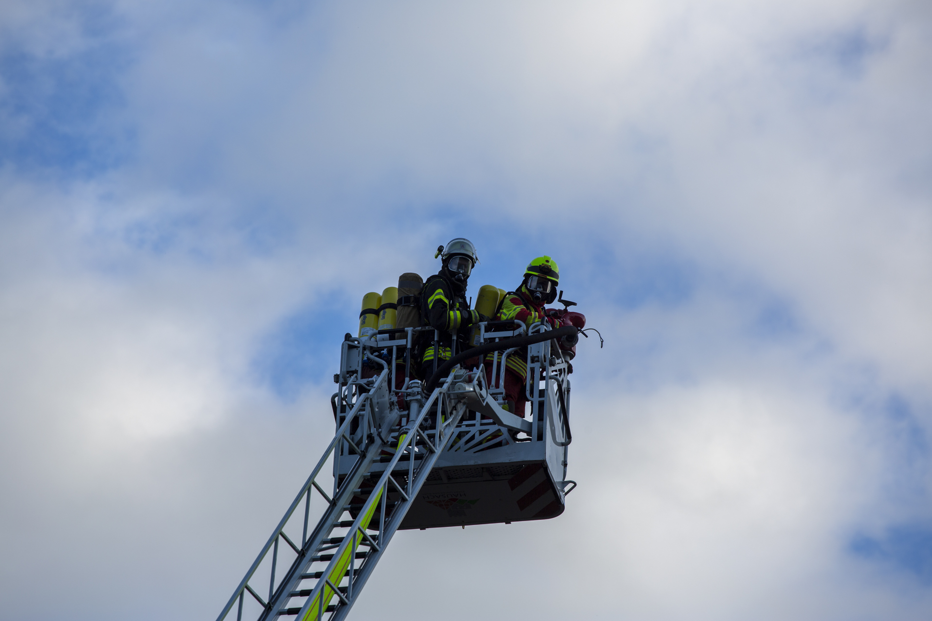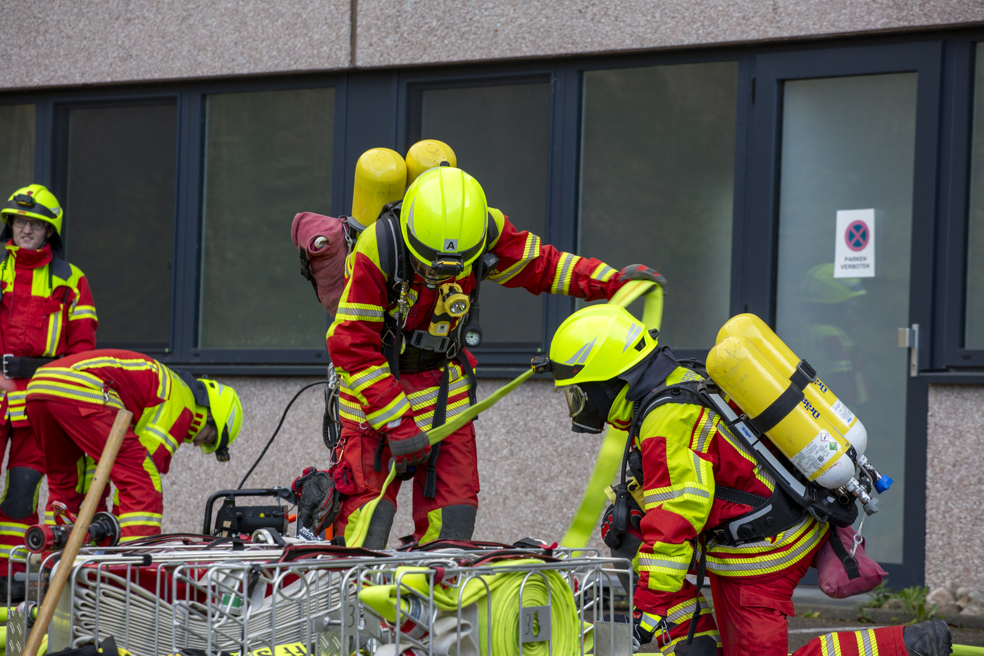 Einsatzleiter Lucas Richter zog hinterher ein zufriedenes Fazit: „Die Menschenrettung gelang zügig, die letzte Person wurde 18 Minuten nach der Alarmierung gerettet. Das ist ein realistischer Wert. Auch das Zusammenwirken von Feuerwehr und DRK hat gut funktioniert“.
