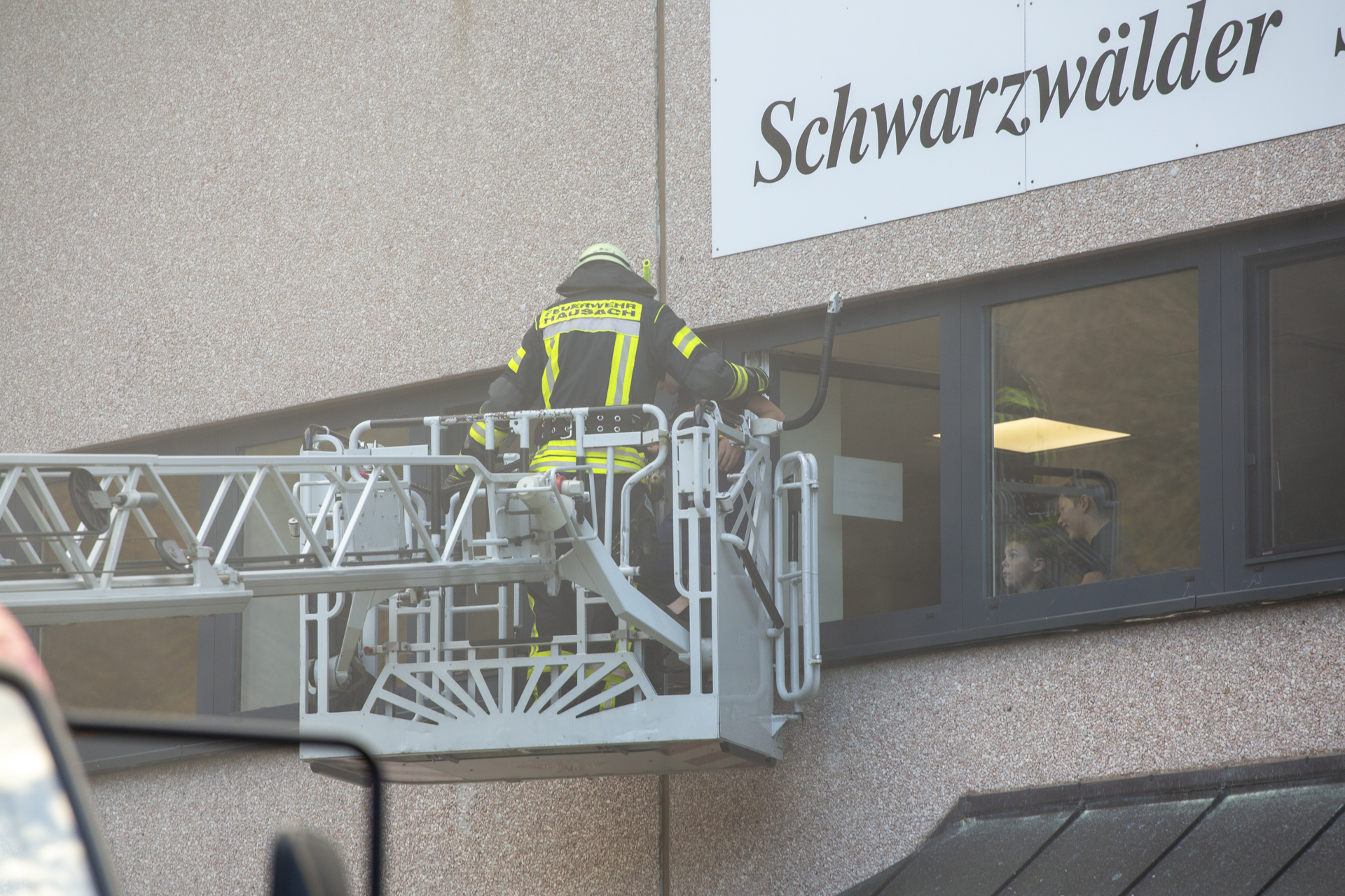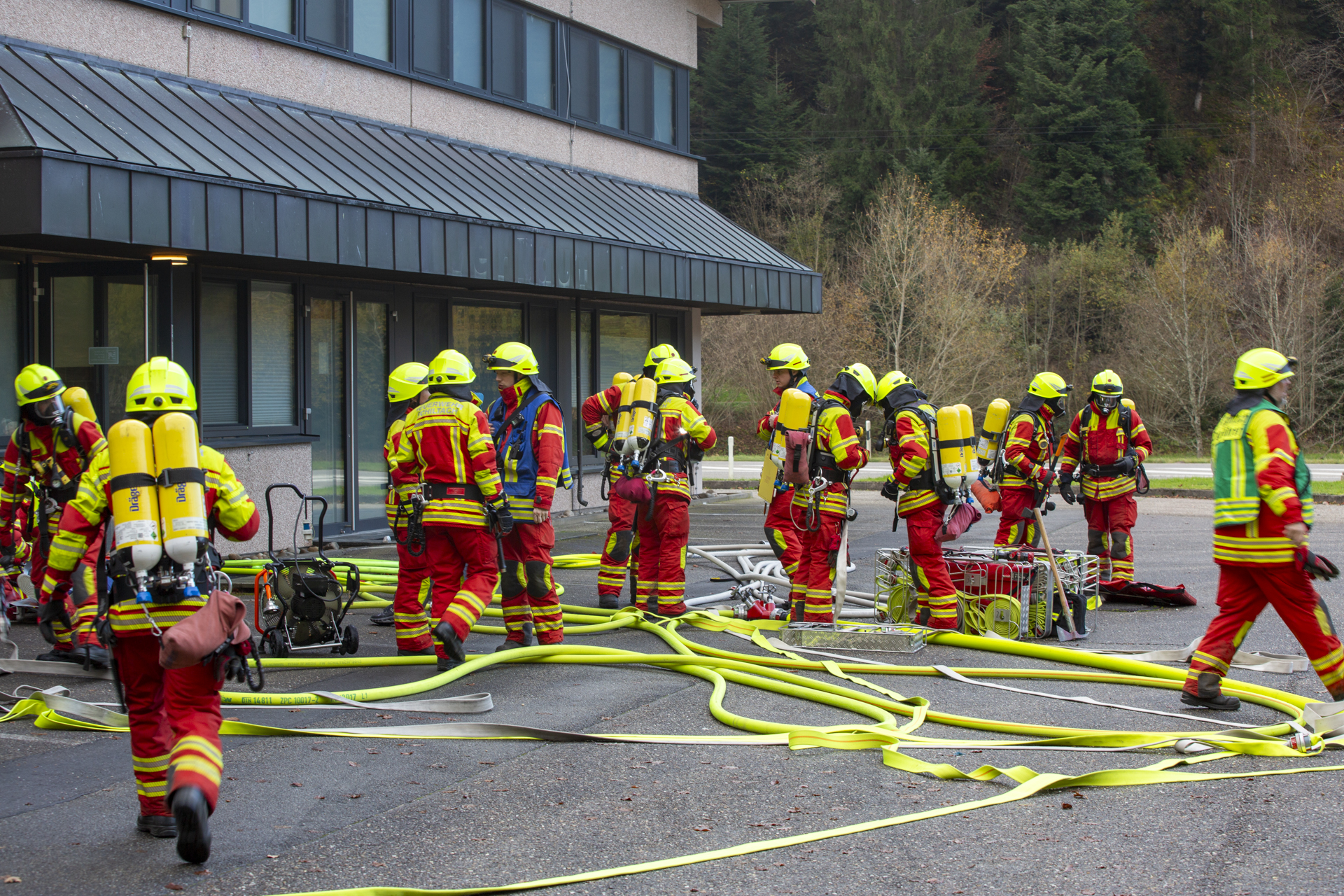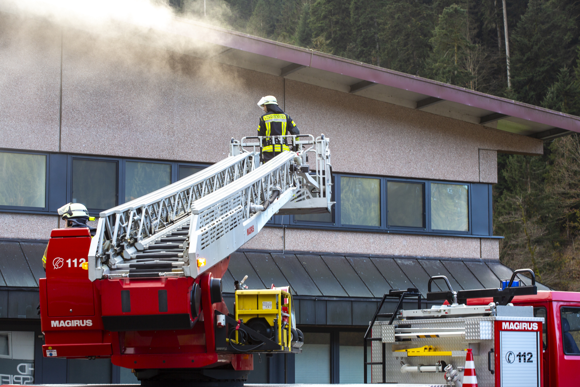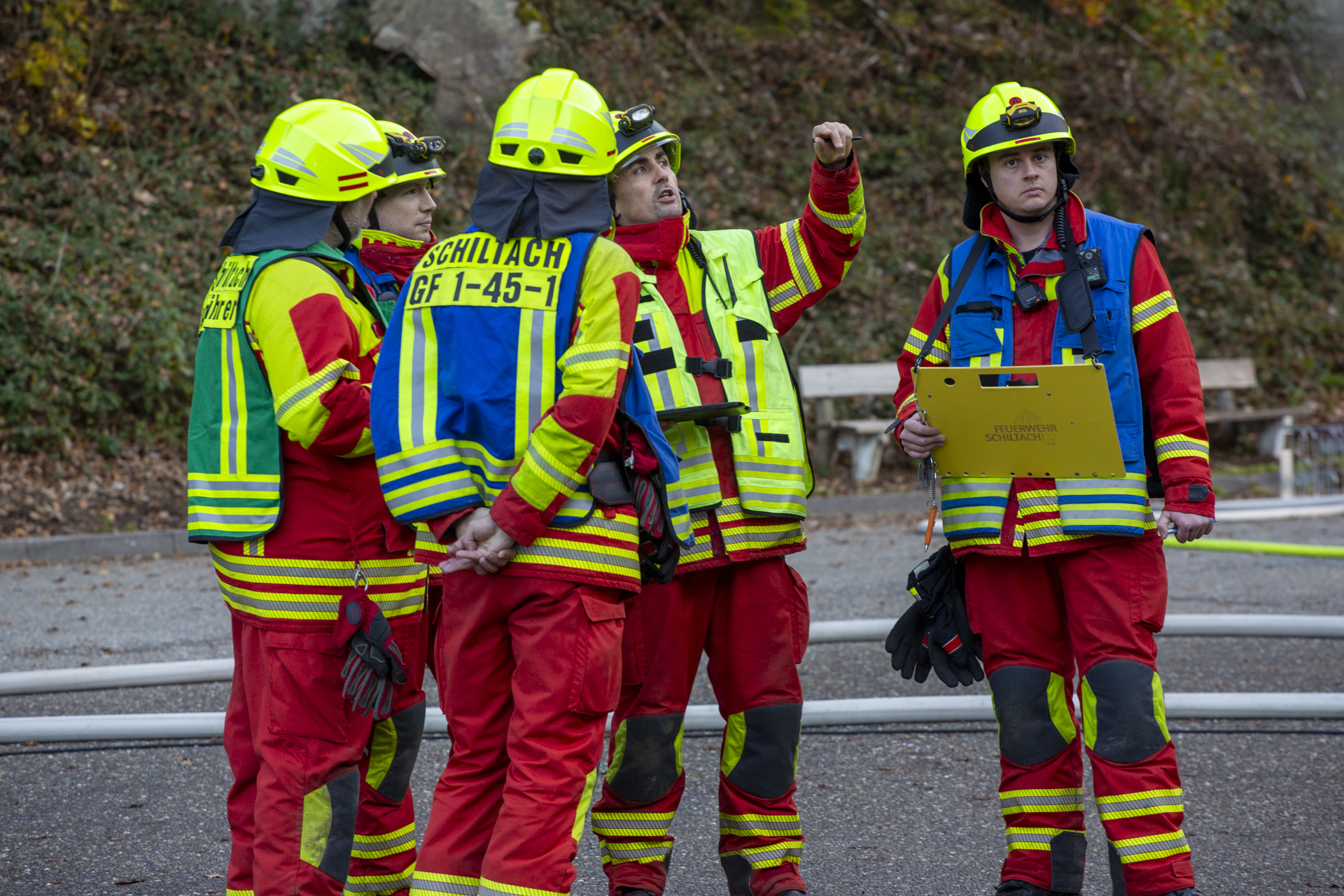 Bei der Übung waren 40 Feuerwehrangehörige der Feuerwehren Schiltach und Hausach sowie einschließlich Drehleiter sieben Feuerwehr-Fahrzeuge im Einsatz. Das DRK war mit einem Fahrzeug und sechs Helfern vertreten.