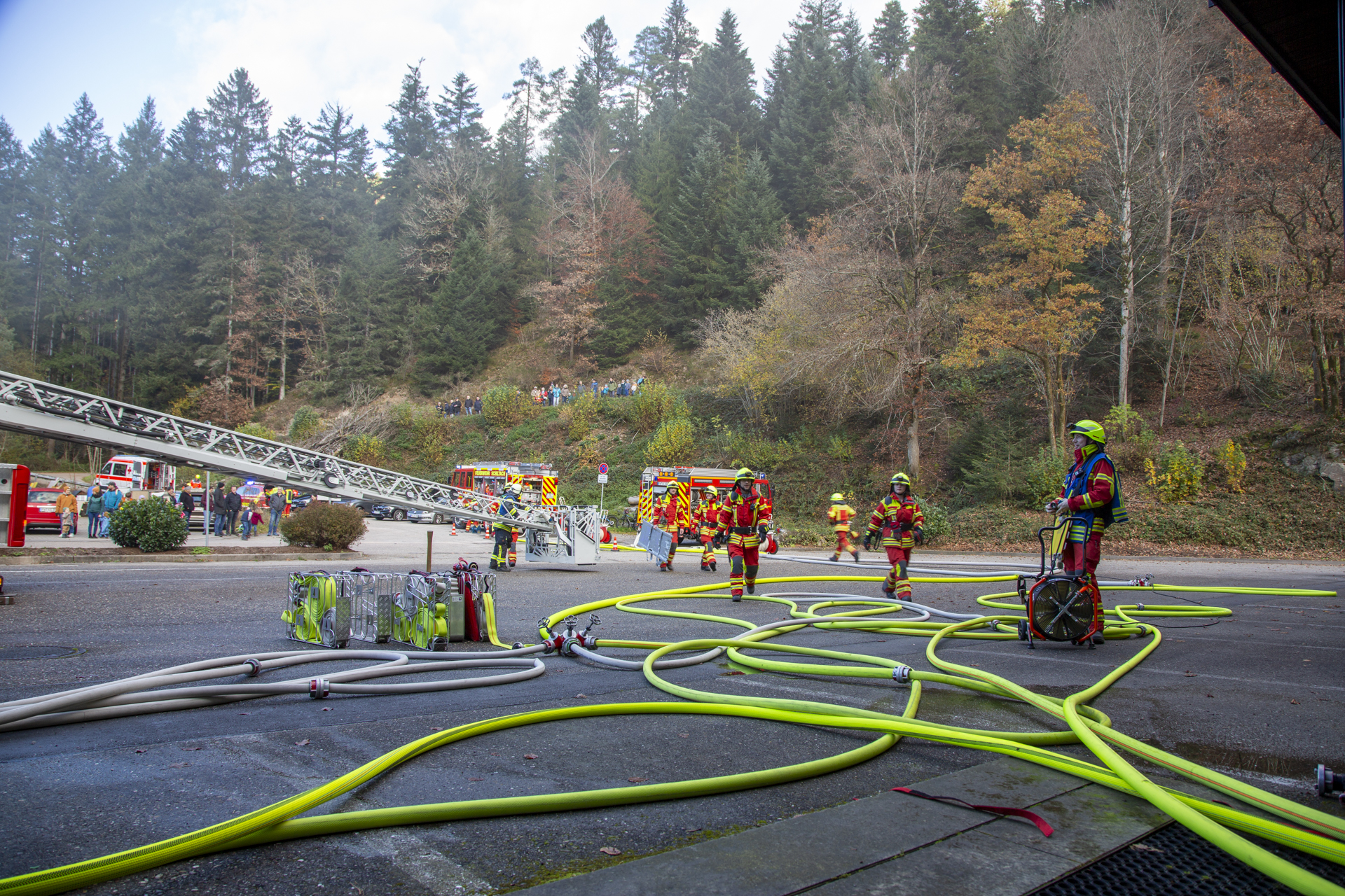 Den zahlreichen Schaulustigen, unter ihnen Bürgermeister Thomas Haas, Lehengerichts Ortsvorsteher Thomas Kipp sowie Gemeinde- und Ortschaftsräte, war schnell klar, dass es sich dabei nicht um Rauch zur Bearbeitung von Schinkenprodukten handelt.