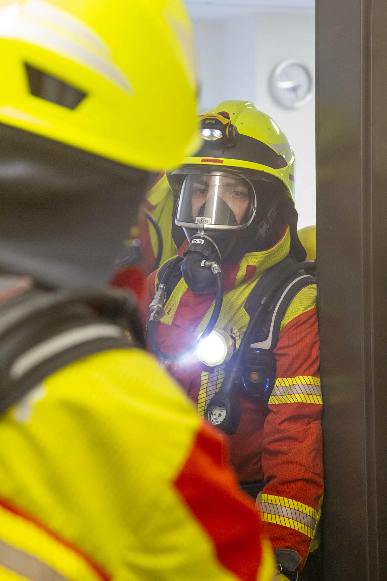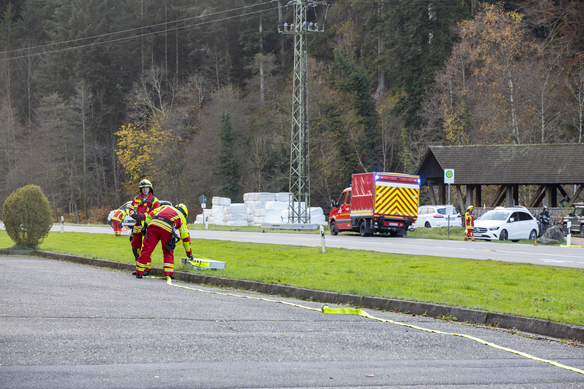 Einsatzleiter Lucas Richter ordnet nach Erkundung der Lage vor Ort fünf Atemschutztrupps für die Menschenrettung an, die Vorrang vor allem hat. Nacheinander werden die verletzten Personen gefunden, gerettet und den Hilfskräften des DRK-Ortsvereins Schiltach-Schenkenzell zur Erstversorgung übergeben.