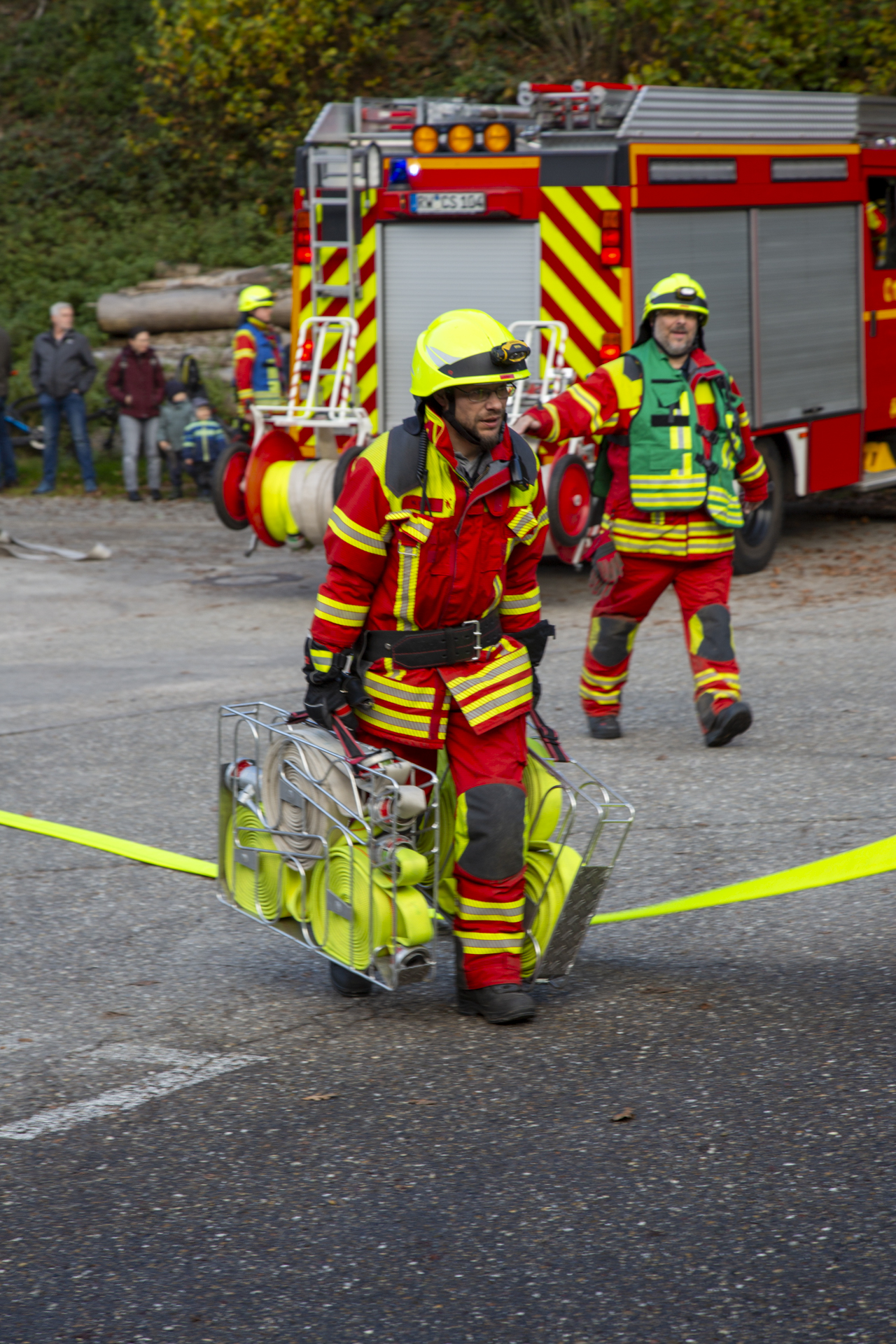 Die Übungsannahme bei der Herbstübung der Feuerwehr Schiltach lautete wie folgt: Durch einen Kabelbrand eines Wäschetrockners im Waschraum entsteht im Erdgeschoss eine starke Rauchentwicklung.