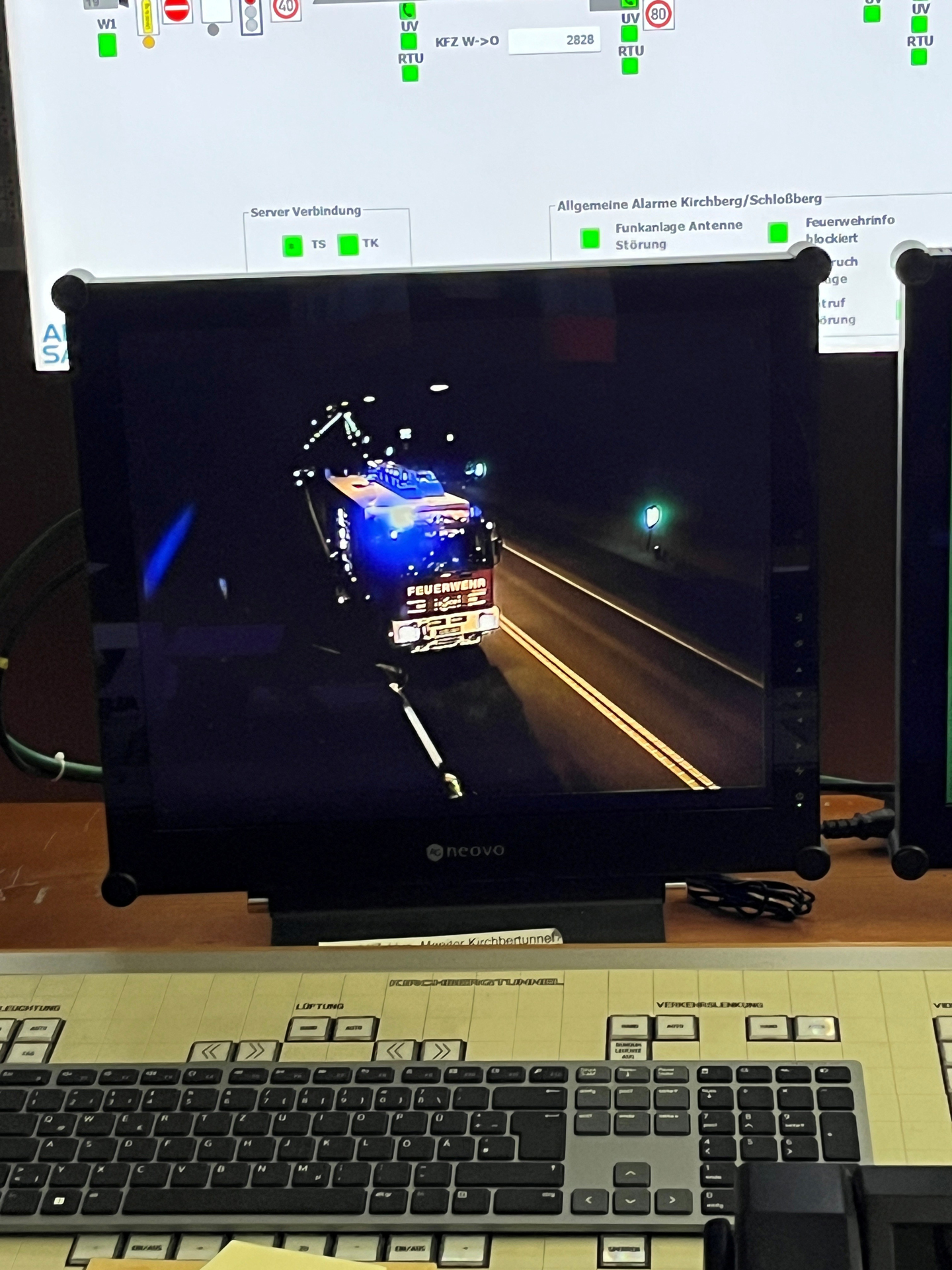 Begleitet wurde die Übung noch von anderer Seite, nämlich aus dem Tunnelbetriebsgebäude. Dort laufen alle technischen Informationen zusammen: Lüftung, Beleuchtung, Detektoren, Kameras und Notfallsysteme. Tunnel gehören zu den bestüberwachten Straßenabschnitten überhaupt; entsprechend wichtig ist es, dass nicht nur die Feuerwehren, sondern auch der Tunnelbetrieb selbst auf realistische Szenarien vorbereitet wird. Tunnelmeister Helmut Fauter und Mitarbeitende der Straßenmeisterei und des Straßenbauamtes behielten in der Zentrale im Blick, ob die Technik wie erwartet reagiert.